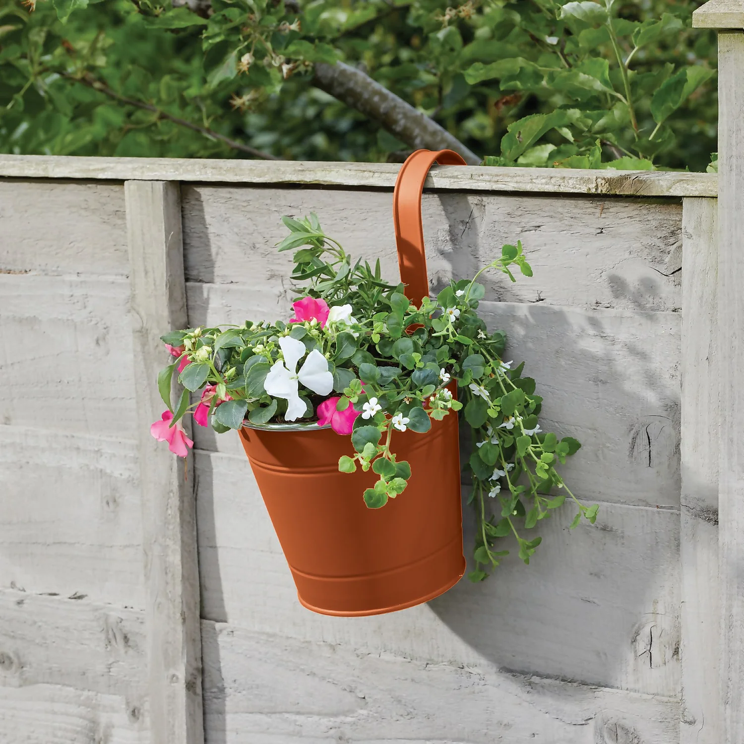 This 6in hanging metal terracotta plant pot is ideal for fences, balconies, walls, and railings. Its powder coated steel design means it is made to last.