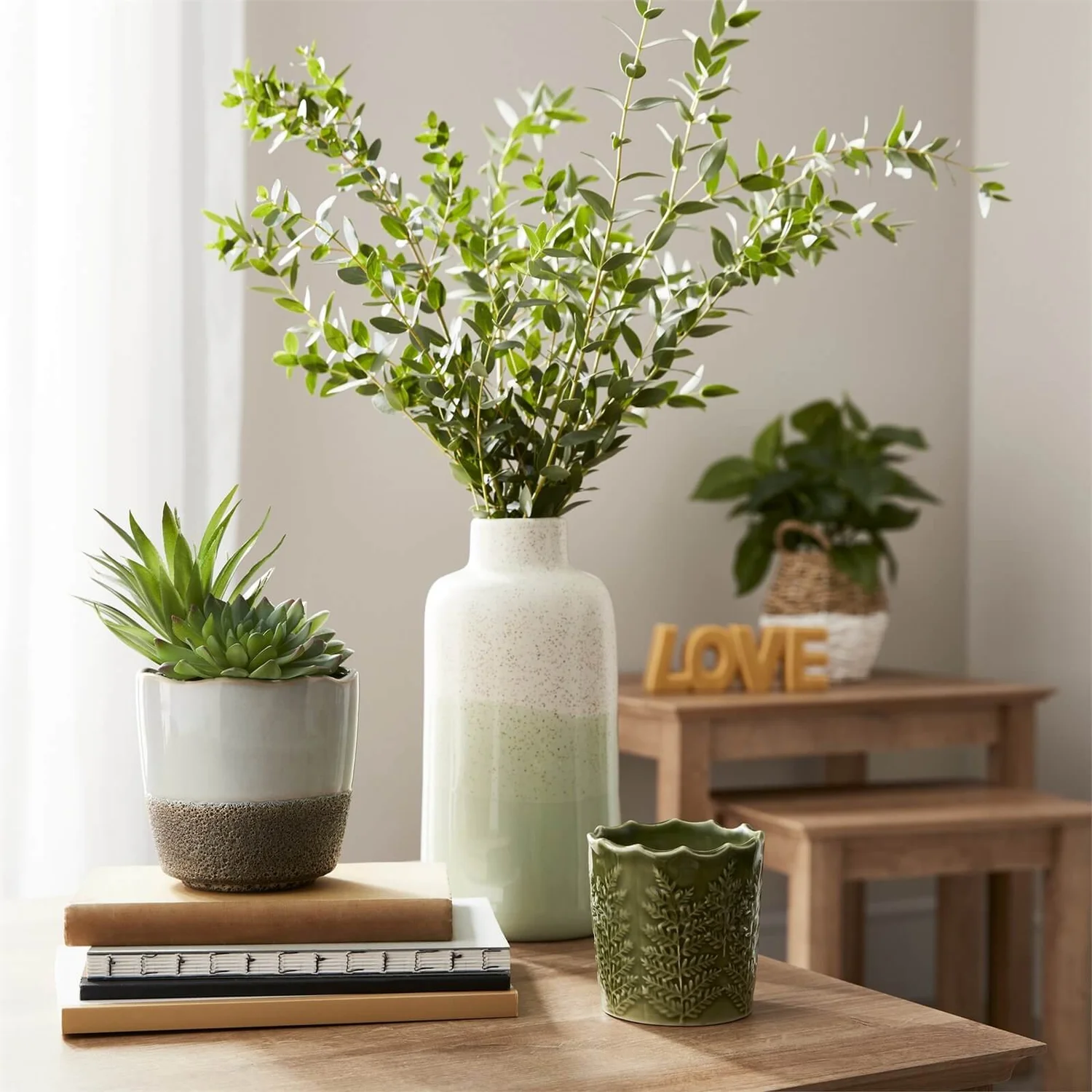 A beautiful addition to the home creating a naturistic feel with a decorative pot.