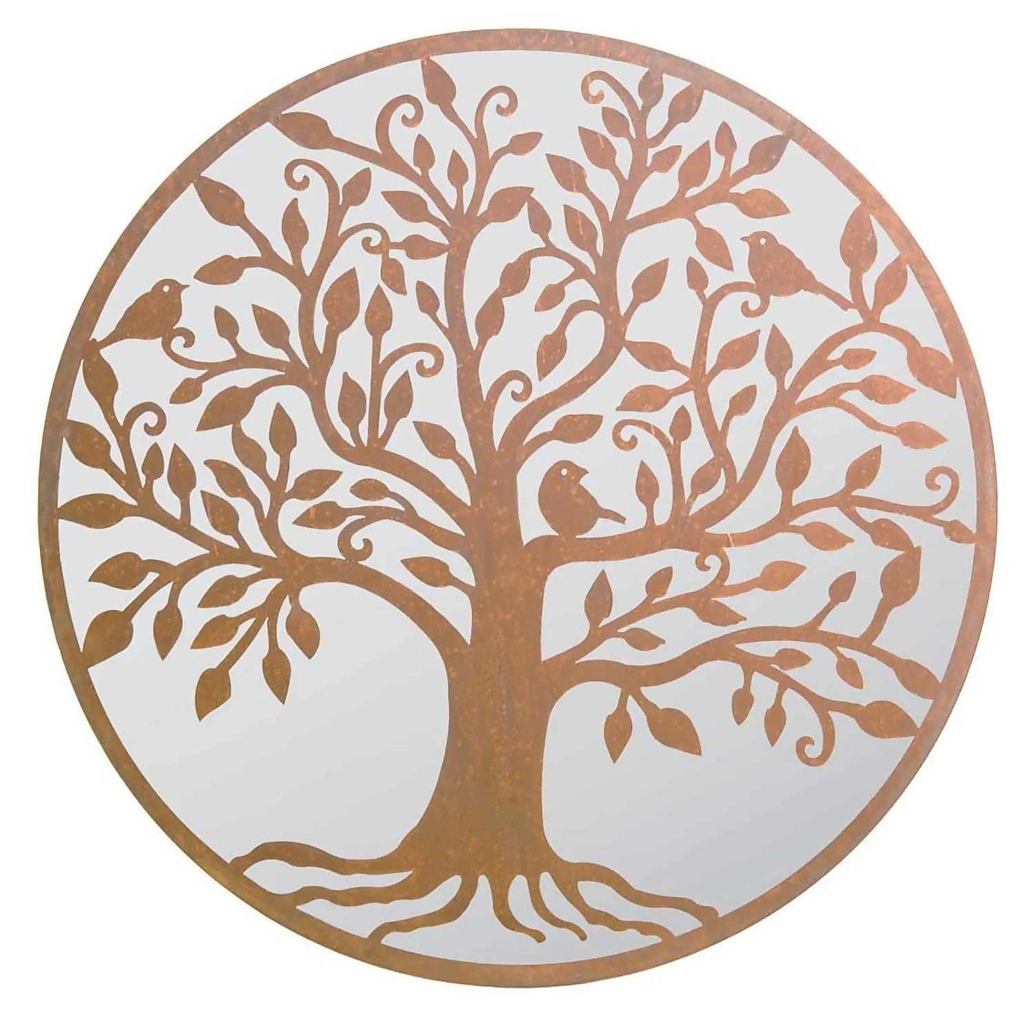 MirrorOutlet authentic garden mirror Stag Deer tree designed round wall mirror. This item is a real statement piece and it would be a true focal point for the garden it will truly impress any passer by. This mirror measures 3ft3, 100cm